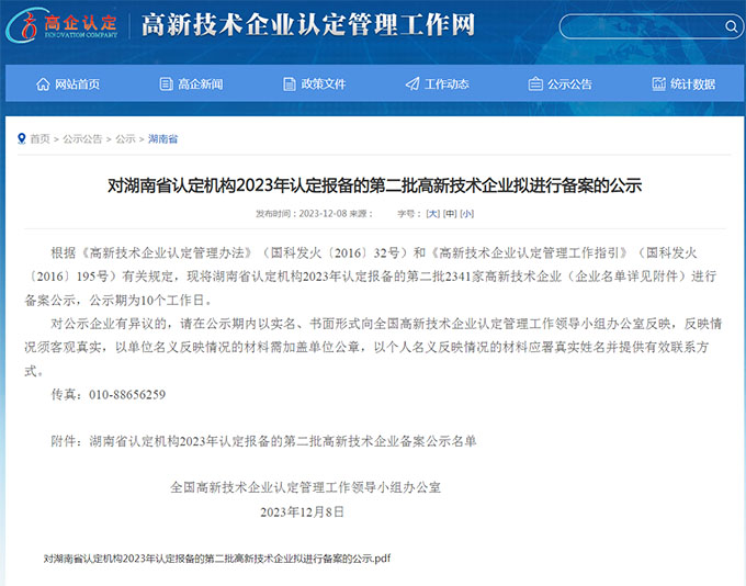 2023年12月,湖南省認(rèn)定機(jī)構(gòu)2023年認(rèn)定報(bào)備的第二批高新技術(shù)企業(yè)備案名單公示,湖南鏈城數(shù)據(jù)服務(wù)有限公司赫然在列,公司申報(bào)國家級(jí)高新技術(shù)企業(yè)獲批通過。