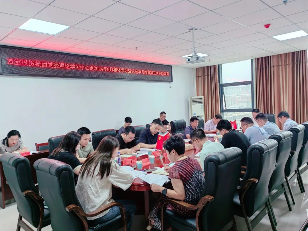 6月28日,萬寶投資集團黨委書記、董事長陽文林主持召開黨委理論學(xué)習(xí)中心組2024年6月集體學(xué)習(xí)暨黨紀(jì)學(xué)習(xí)教育第三次專題學(xué)習(xí),深入學(xué)習(xí)領(lǐng)會習(xí)近平總書記關(guān)于全面加強黨的紀(jì)律建設(shè)和優(yōu)化營商環(huán)境、招商引資、民營經(jīng)濟發(fā)展的重要論述,逐章逐條學(xué)習(xí)《中國共產(chǎn)黨紀(jì)律處分條例》,推動黨紀(jì)學(xué)習(xí)教育走深走實,持續(xù)在學(xué)思用貫通、知信行統(tǒng)一上下功夫。黨委副書記、總經(jīng)理徐業(yè)波,黨委委員、紀(jì)委書記葛旭華,黨委委員易志高,全體主管及以上人員參加。
