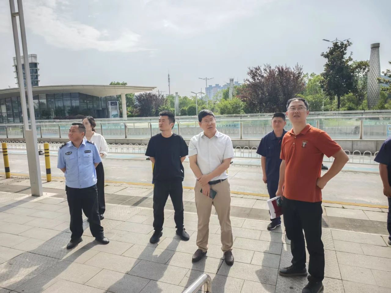 (在高鐵南站廣場重點查看用電設(shè)備、消防及排水設(shè)施運行情況)